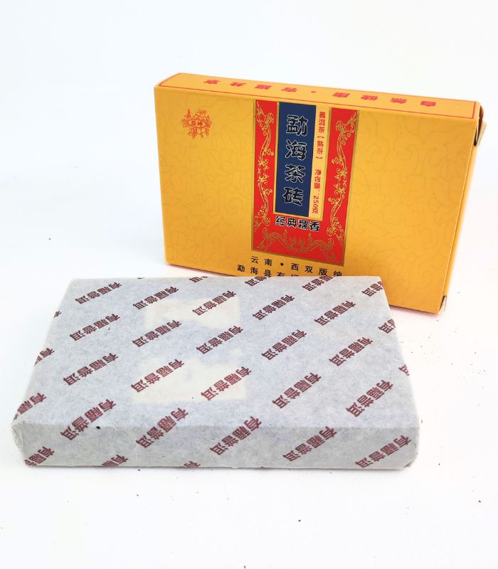 Шу Пуер “Золотий Великий Дар” 250 грам – Класичний Пуер у цеглі, насичений смак Шу Пуер “Золотий Великий Дар” (“Jin