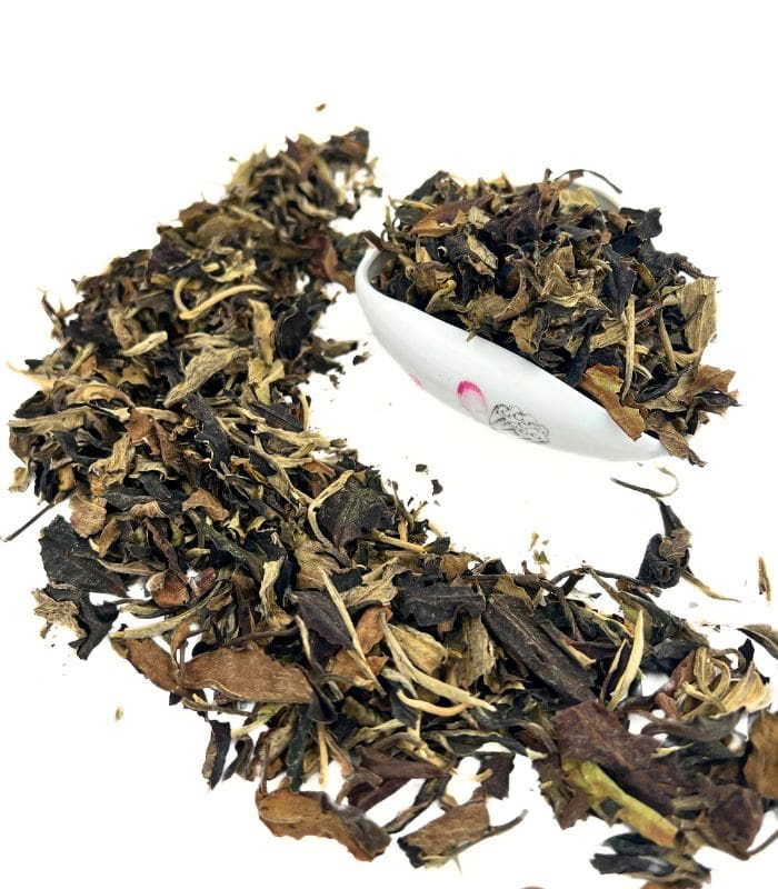 Опис: Білий чай “Місячне світло” Юе Гуан Бай (月光白) – це унікальний китайський чай із провінції Юньнань. Його назва перекладається як “Біле Місячне Світло”, що відображає його ніжний та світлий характер. Цей чай виробляється з великого листя та нирок чайних дерев сорту Цзингу Да Бай Ча, які ростуть на висоті понад 1500 метрів над рівнем моря.