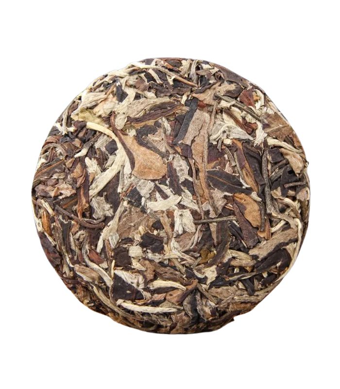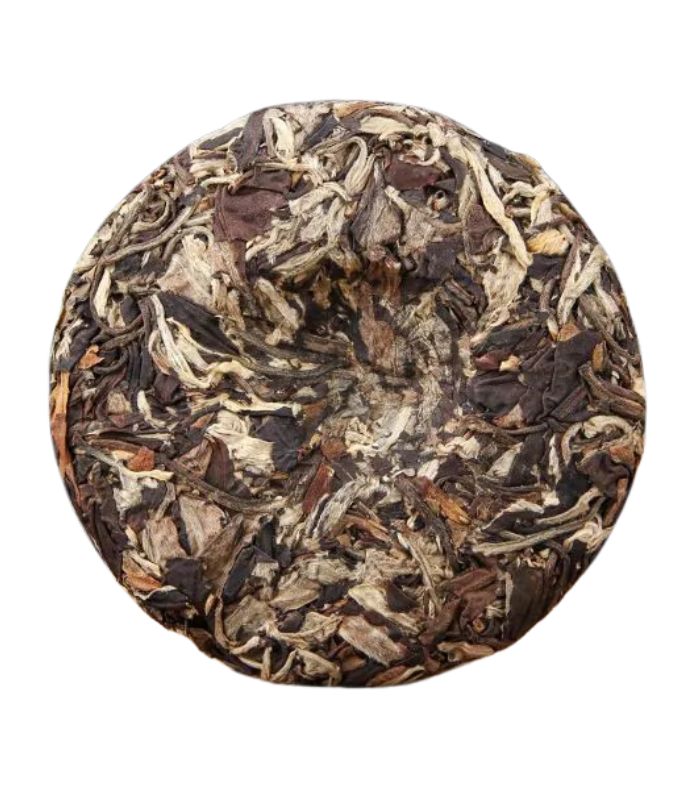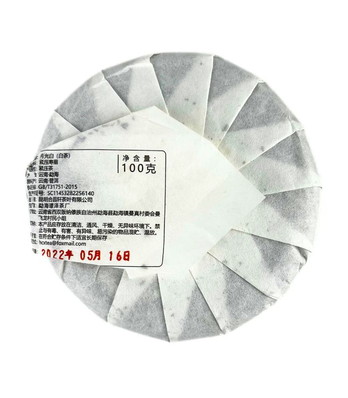 Цей пресований білий чай у формі млинця вагою 100 грам виготовлений з високоякісної сировини, зібраної з великолистових чайних дерев сорту Цзингу Да Бай Ча у високогірних районах провінції Юньнань.