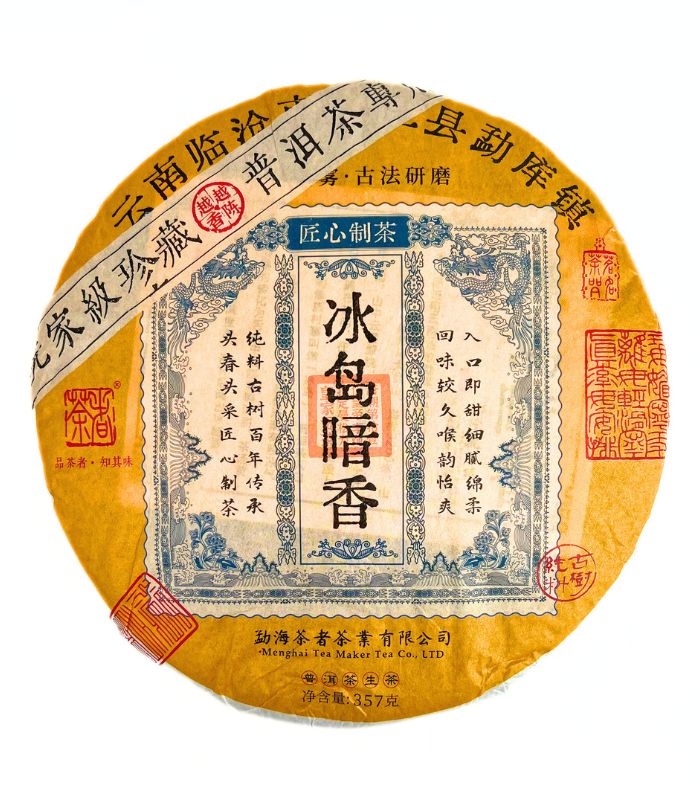 Назва продукту: Торт Menghai, чай Pu'er (приготовлений чай) Матеріал: висушений на сонці зелений чай з крупнолистого сорту Менхай в провінції Юньнань: Сішуанбаньна Дайський автономний округ Юньнань. Маса нетто: 357 г/торт Умови зберігання: у чистому, провітрюваному, сухому місці, захищеному від сонячних променів.