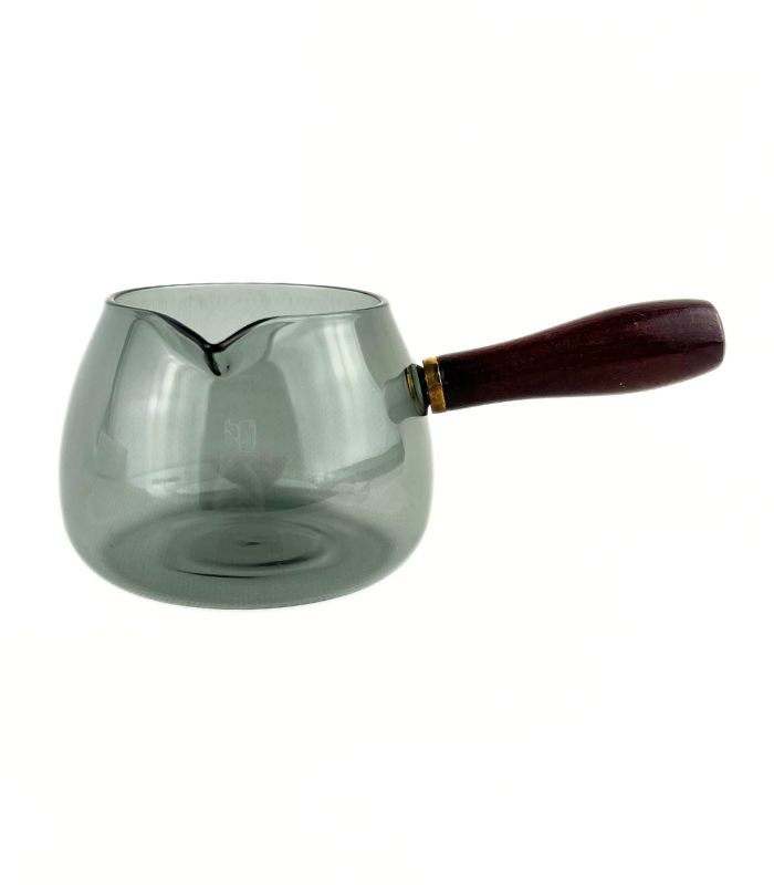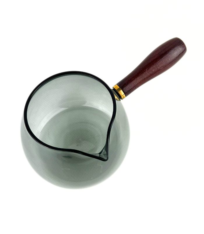 - Матеріал: Чахай виготовлений з боросилікатного термостійкого скла, яке спеціально оброблене для надання йому благородного димчастого або темно-сірого відтінку. Це гарантує, що посудина безпечно витримує високі температури, необхідні для заварювання Пуеру та Червоного Чаю.