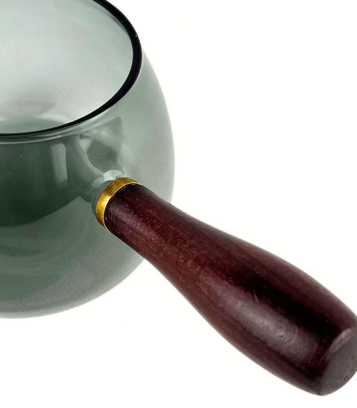 - Ручка: Дерев’яна ручка (з натурального дерева, такого як венге або бук) забезпечує комфортне та безпечне використання, запобігаючи опікам, і створює теплий контраст із холодним блиском скла.