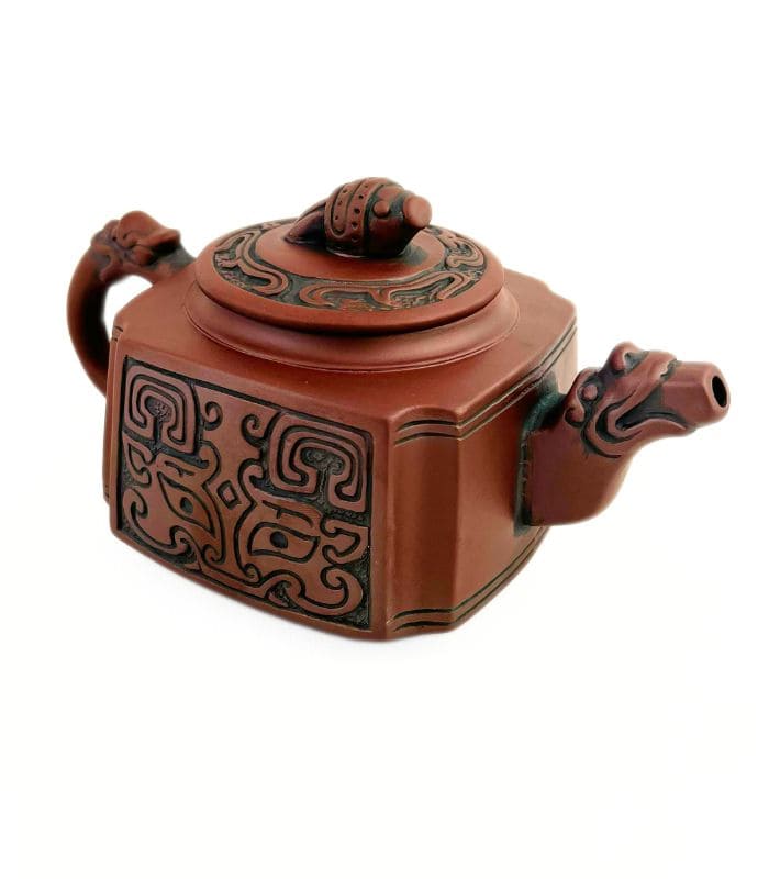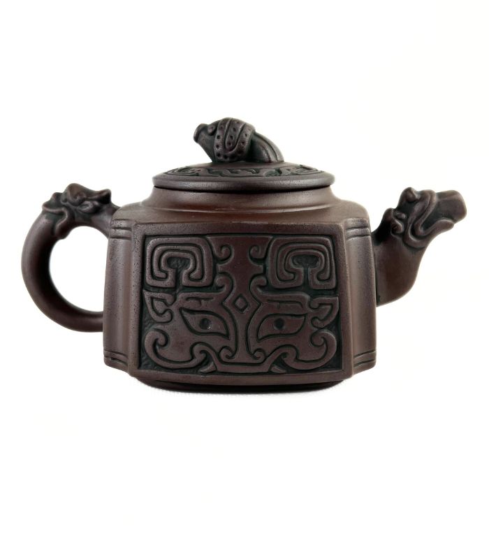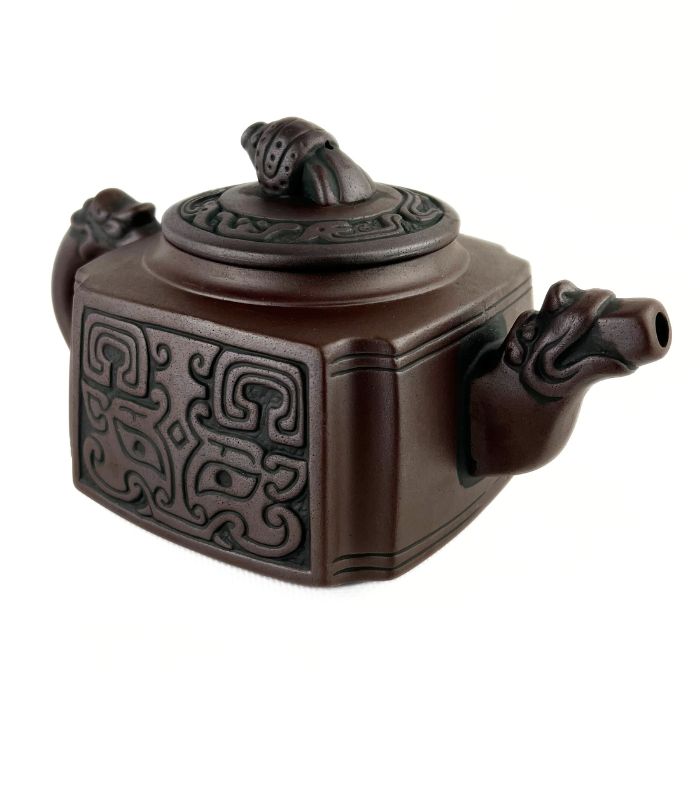 Подовжений носик у вигляді голови дракона – символу сили, мудрості та захисту – робить цей чайник особливим талісманом у вашій чайній церемонії. Геометричний корпус прикрашений орнаментами у стилі стародавнього Китаю, що надає йому колекційної цінності.