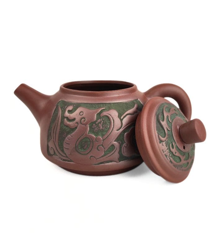 Ексклюзивний чайник із ісинської глини ручної роботи з вишуканим дизайном у вигляді дракона. Чайник зберігає аромат та смак чаю завдяки пористій структурі глини. Ідеальний для заварювання пуерів, улунів та інших сортів чаю. Стильний дизайн робить його чудовим вибором для чайної церемонії або як подарунок.