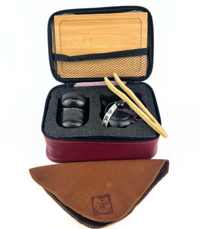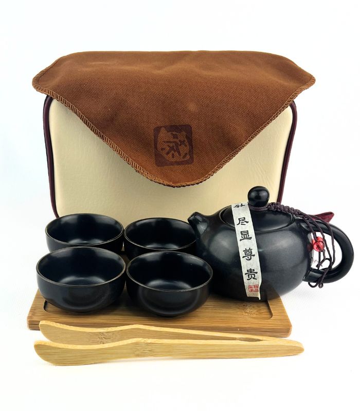 Цей дорожній чайний набір із глиняного посуду оснащений власним футляром для транспортування та бамбуковою дошкою для сервірування, щоб насолоджуватися гунфу в дорозі. Подорожуючи чи ні, ви можете легко провести власну чайну церемонію будь-коли та де б ви не були.