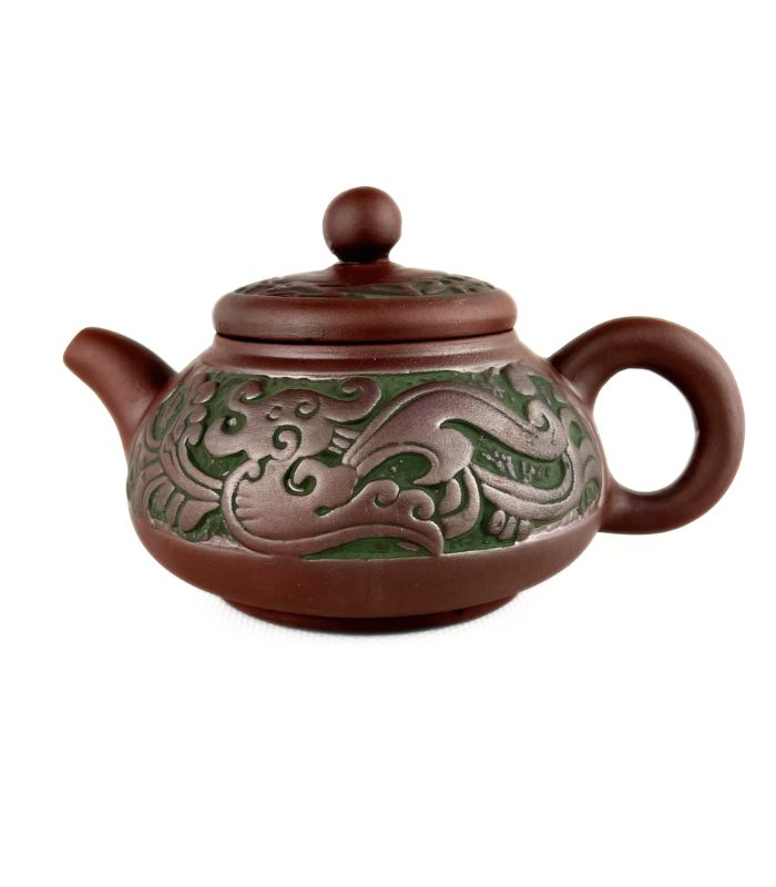 Глиняний Чайник об’ємом 250 мл. Виготовлений із якісної глини, він прикрашений деталізованим об’ємним різьбленням мотив дракона, що робить його центральним елементом будь-якої чайної церемонії. Якщо ви шукаєте, де купити глиняний чайник з унікальним дизайном в Україні, цей виріб стане чудовим вибором.