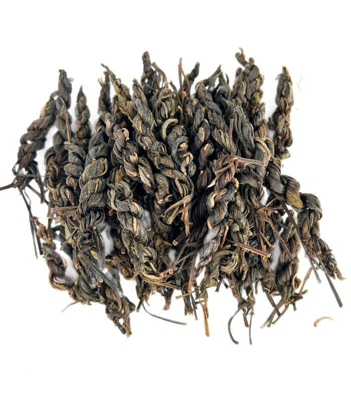 Шен Пуер «Коса» – унікальний китайський чай, виготовлений із добірних листків старих чайних дерев провінції Юньнань. Характерною особливістю цього чаю є ручне плетіння листя у формі коси, що зберігає його природний аромат та сприяє повільному дозріванню. Заварений напій має яскравий смарагдовий колір, свіжий трав’яний смак із квітковими нотками та довгий солодкуватий післясмак. Ідеально підходить для чайних церемоній та щоденного вживання.
