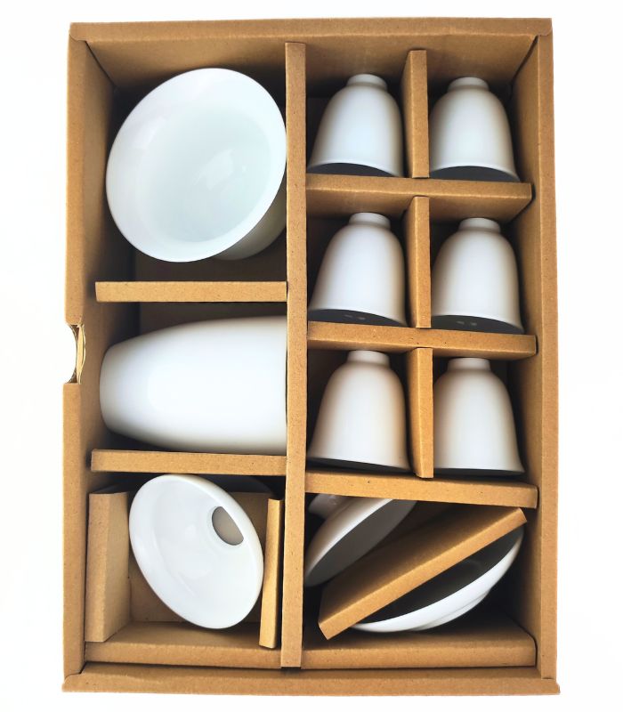 • Піали (6 штук, 50 мл кожна): Ці невеликі піали також виготовлені з порцеляну. Вони ідеально підходять для індивідуального чаювання або для чаювання в компанії друзів. Мають конусообразну форму.