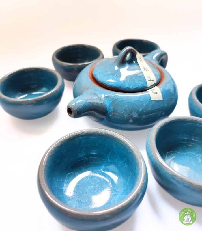 Набір із 6 піал та чайника – Блакитний Колотий Лід