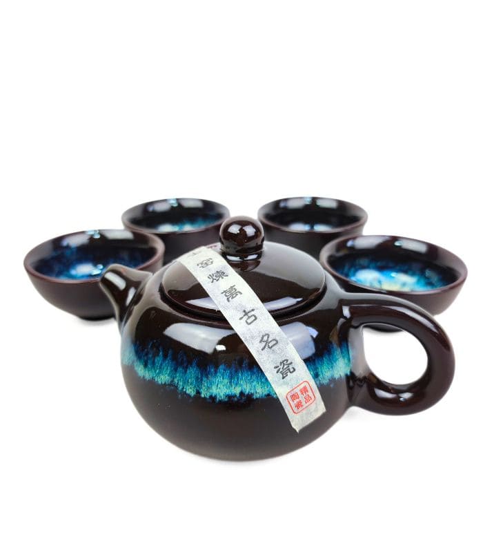 Чайний Набір із 6 піал та чайника – Синій Колотий Лід – пиала 40 мл – чайник 160 мл