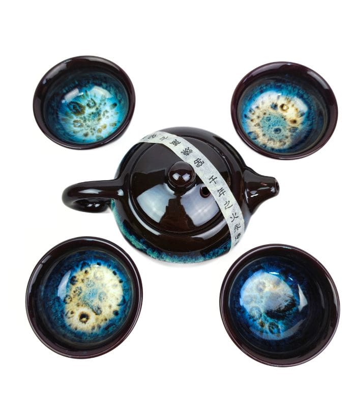 Чайний Набір із 6 піал та чайника – Синій Колотий Лід – пиала 40 мл – чайник 160 мл