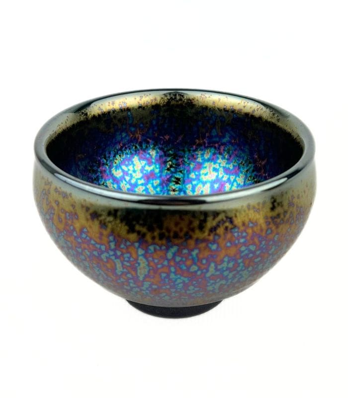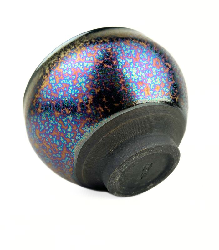 Ця піала виготовлена з високоякісної кераміки та має ефектну глазур із сяючими вкрапленнями, які нагадують зоряне небо або розплавлений метал. Завдяки спеціальній технології випалу глазур створює унікальний малюнок, що робить кожну піалу неповторною.
