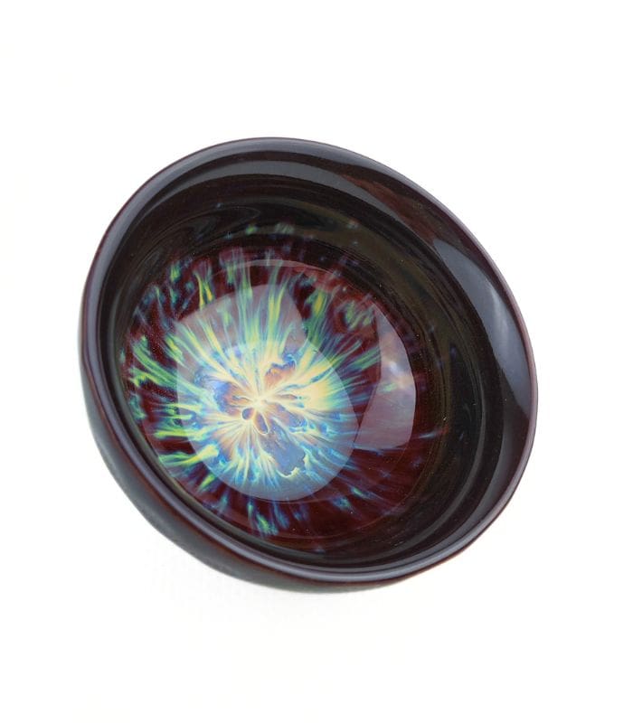 Піала для чаю “Сяйво” – це справжній витвір мистецтва для чайних церемоній. Завдяки спеціальній технології випалу глазур утворює візерунки, що нагадують космічний спалах або зоряну туманність. Кожна піала має унікальний рисунок, що робить його неповторним.