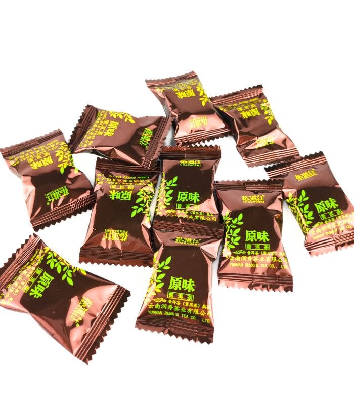 Шу Пуер міні точа з клейким рисом Пуер, збагачений молодими паростками рису, представлений у вигляді міні-точки, що нагадує маленьку таблетку,