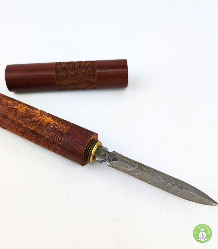Пуерне шило – це елегантний інструмент, призначений для акуратного розламування сильно спресованих чайних млинців або цегли пуеру. Шило у світло коричневому кольорі. На ньому присутні ієрогліфи, що надає йому автентичного вигляду.