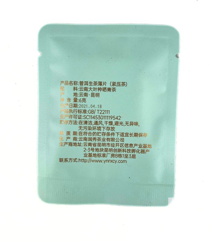 Цей чай, виготовлений у Куньміні, провінція Юньнань, з високоякісної крупнолистової сировини врожаю 2021 року. Є чудовим прикладом молодого Шен Пуера. Завдяки формату “тонкої плитки” він зручний для індивідуального заварювання і чудово підходить для поступового дозрівання та розвитку смаку з роками.
