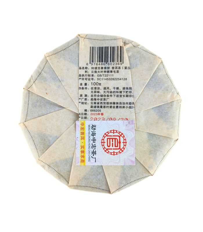 Шен Пуер (сирий Пуер) “Слон” у формі компактного чайного млина вагою 100 грамів, урожай Весна 2023 року. Цей особливий китайський чай виготовлений з листя старих чайних дерев з відомої гори Да Сюешань, що в провінції Юньнань, і є справжнім скарбом для поціновувачів та колекціонерів.