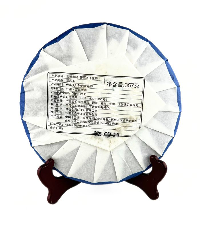 Назва продукту: Торт Menghai, чай Pu'er (приготовлений чай) Матеріал: висушений на сонці зелений чай з крупнолистого сорту Менхай в провінції Юньнань: Сішуанбаньна Дайський автономний округ Юньнань. Маса нетто: 357 г/торт Умови зберігання: у чистому, провітрюваному, сухому місці, захищеному від сонячних променів.