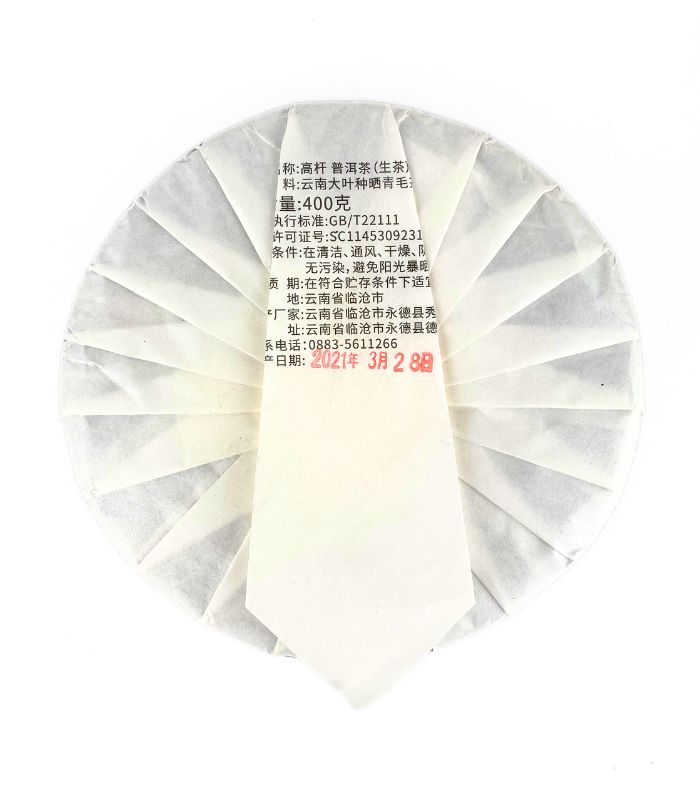 Шен пуер Гао Шань 2021 виготовлений у провінції Юньнань, округ Юнде, з великих листків сорту Да Є Чжун. Весняний збір забезпечує максимальну насиченість і свіжість смаку. Пресований у класичний млинець вагою 400 г, цей пуер стане чудовим вибором як для щоденного чаювання, так і для тривалого зберігання.