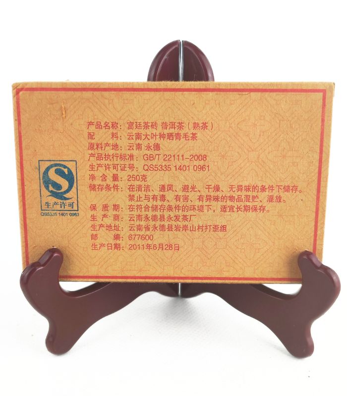 Назва продукту: Торт Menghai, чай Pu'er (приготовлений чай) Матеріал: висушений на сонці зелений чай з крупнолистого сорту Менхай в провінції Юньнань: Сішуанбаньна Дайський автономний округ Юньнань. Маса нетто: 357 г/торт Умови зберігання: у чистому, провітрюваному, сухому місці, захищеному від сонячних променів.
