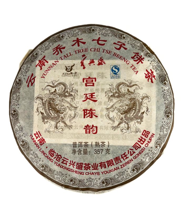 Назва продукту: Торт Menghai, чай Pu'er (приготовлений чай) Матеріал: висушений на сонці зелений чай з крупнолистого сорту Менхай в провінції Юньнань: Сішуанбаньна Дайський автономний округ Юньнань. Маса нетто: 357 г/торт Умови зберігання: у чистому, провітрюваному, сухому місці, захищеному від сонячних променів.