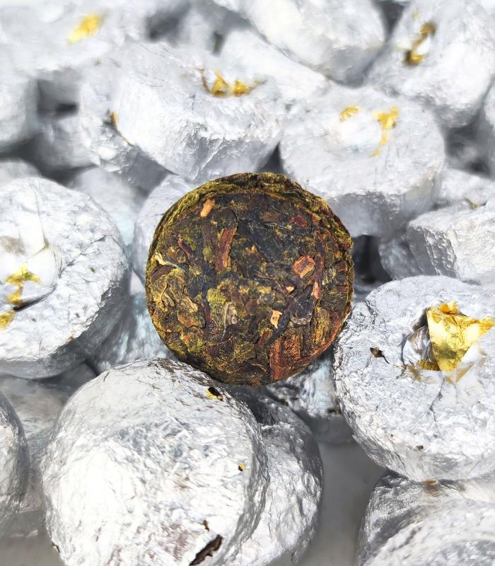 Шу Пуер міні точа з клейким рисом Пуер, збагачений молодими паростками рису, представлений у вигляді міні-точки, що нагадує маленьку таблетку,