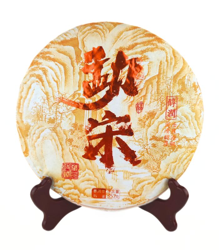 Шу Пуер “Золото Юньнані” у формі традиційного чайного млинця вагою 357 грам. Цей пресований чай є справжнім скарбом із китайської провінції Юньнань, відомої своїми давніми чайними традиціями.
