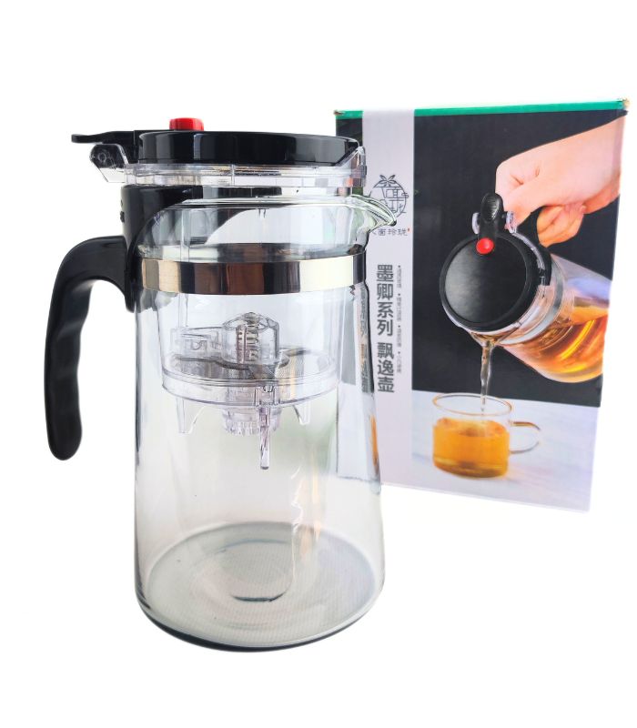 Тіпод 750 мл – сучасний заварник із вбудованою колбою для проливного способу заварювання. Завдяки прозорим стінкам можна контролювати ступінь настою, а спеціальний механізм дозволяє легко відокремити чайний настій від листя. Ідеально підходить для улунів, пуерів, зеленого, чорного та трав’яного чаю.