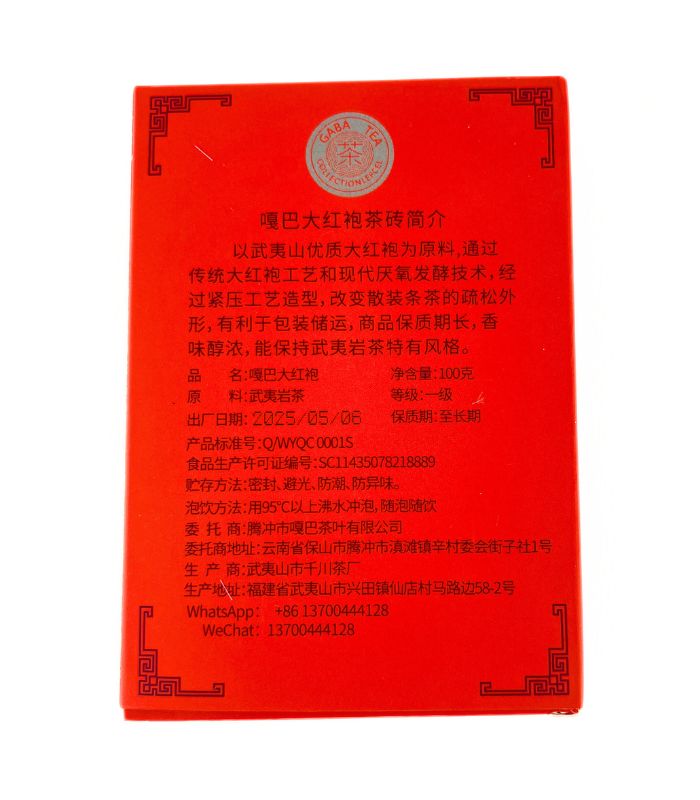 Чай Габа Да Хун Пао призначений для поціновувачів скельних улунів, які шукають поєднання глибокого прогрітого смаку та релаксуючого ефекту. Напій виготовлений із високоякісної сировини району Вуїшань за допомогою технології анаеробної ферментації, що дозволяє отримати високий вміст гамма-аміномасляної кислоти.