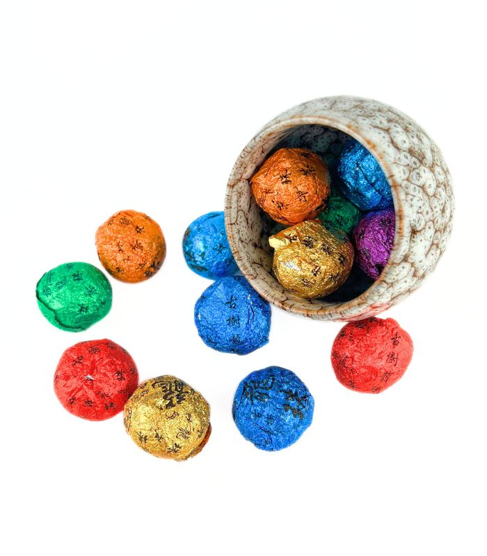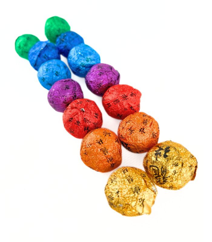 • Упаковка: Кожна “Перлина Дракона” індивідуально загорнута у фольгу. Це захищає чай від вологи та сторонніх запахів, що критично важливо для Шен Пуеру, та робить його незамінним для подорожей чи офісу.