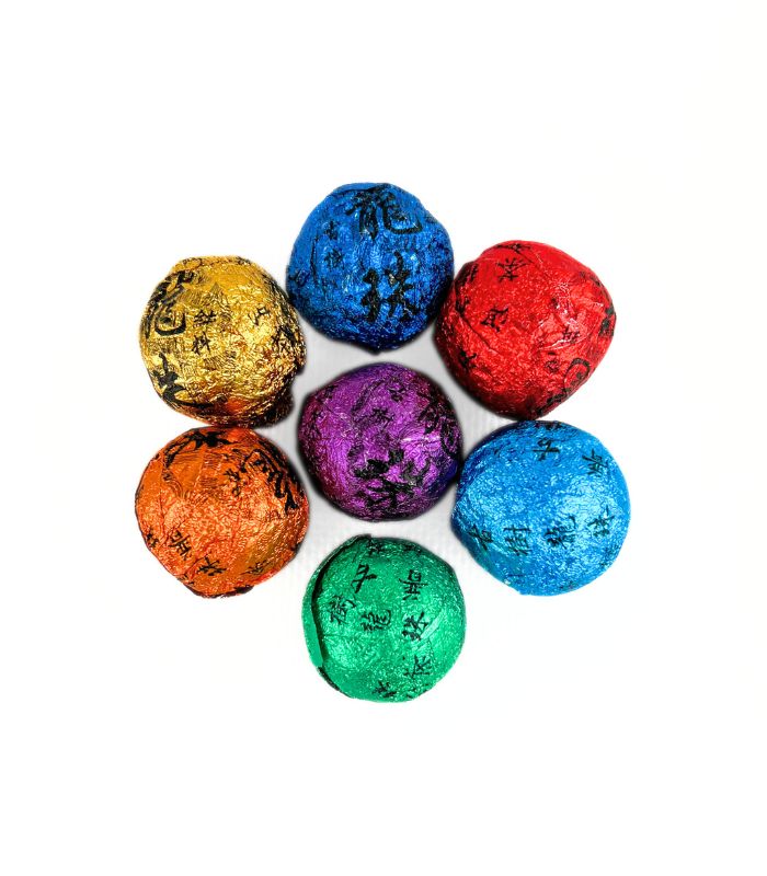 • Упаковка: Кожна “Перлина Дракона” індивідуально загорнута у фольгу. Це захищає чай від вологи та сторонніх запахів, що критично важливо для Шен Пуеру, та робить його незамінним для подорожей чи офісу.