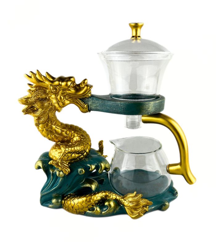 • Декоративне оформлення: стійка підставка виконана у формі деталізованого золотого дракона, що височіє над бірюзовими морськими хвилями.