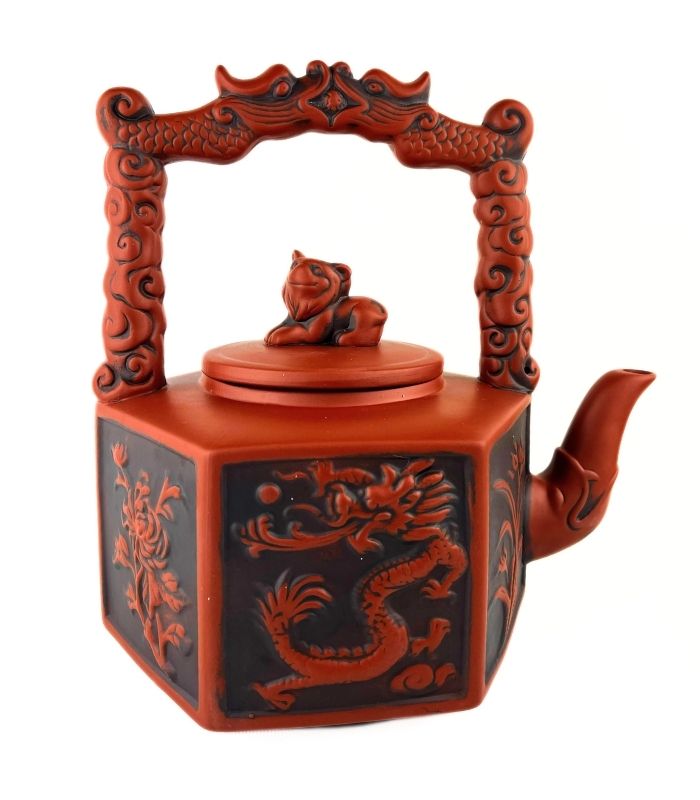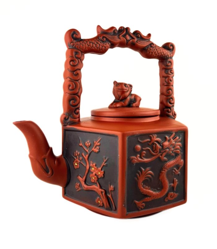 Ручка Ти Лян: Массивная верхняя ручка украшена объемными узорами в форме облаков и драконов. Она обеспечивает удобную и безопасную разливку чая даже при полном заполнении большого объема.