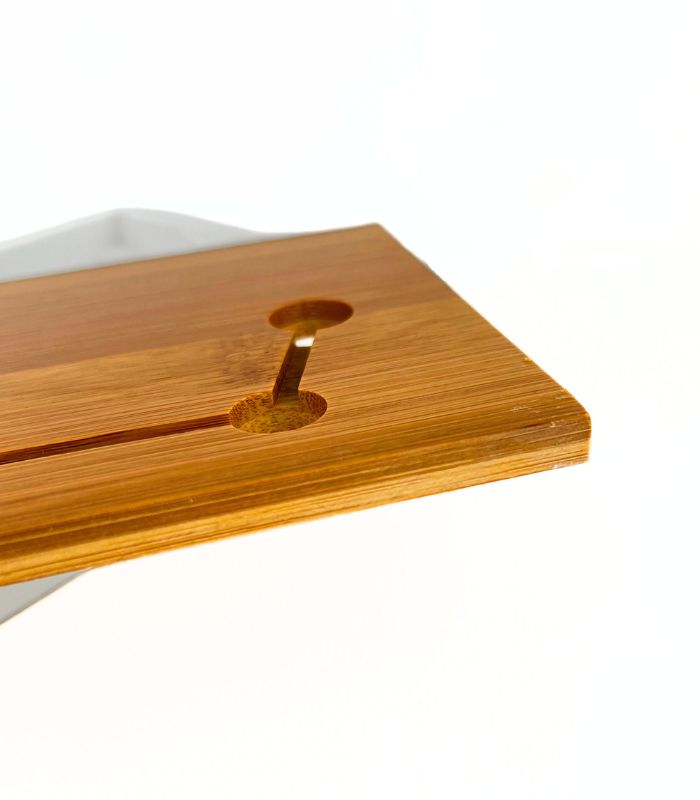 Вырезы на поверхности доски не только декоративны, но и практичны – через них стекает лишняя вода или пролитая заварка в нижний поддон, что позволяет сохранить чистоту во время чаепития.