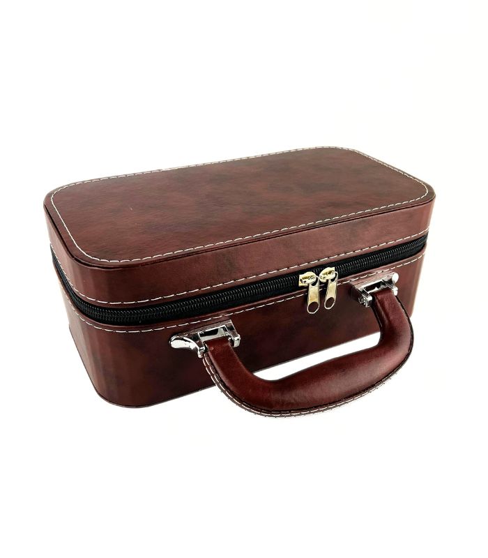 Все предметы компактно упакованы в стильный футляр-чемоданчик с ручкой, обеспечивающей безопасную транспортировку.