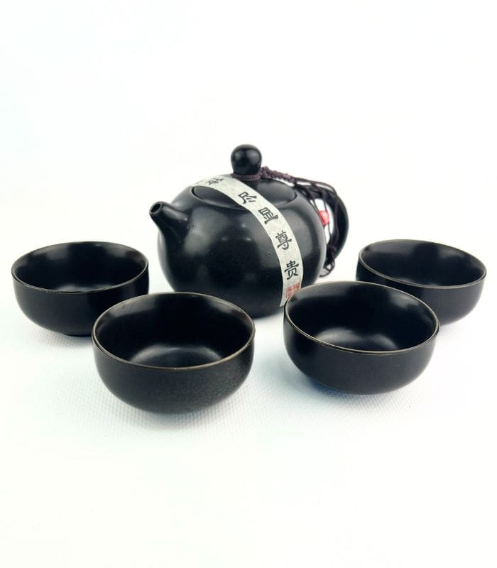 Набор для чайной церемонии из чайника 160 мл и четырех пиал по 40 мл в чёрном цвете.
