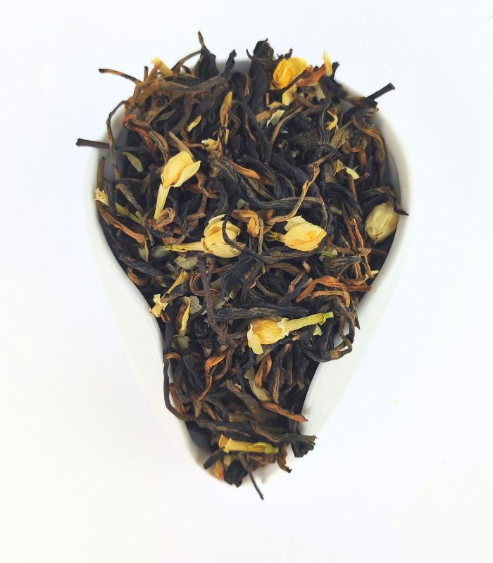 Красный чай Дянь Хун с жасмином – это изысканный китайский чай, сочетающий в себе насыщенный вкус красного чая с нежным ароматом жасмина. Выращенный в провинции Юньнань, этот чай производится из молодых чайных листочков и нежных почек, которые собираются вручную. После сбора листьев проходит процесс ферментации, придающий чаю глубокий, богатый вкус с нотками сухофруктов и меда.