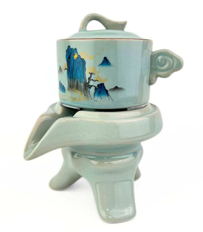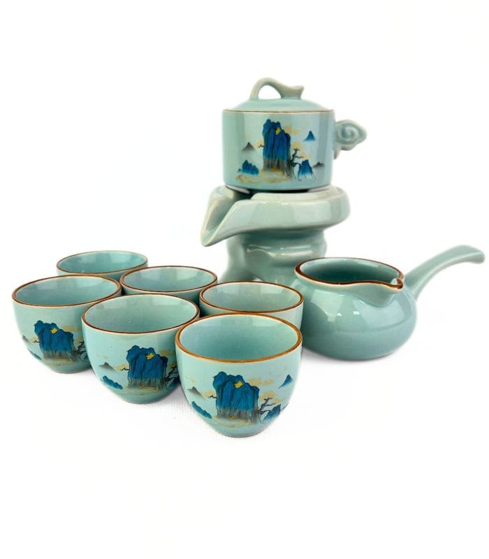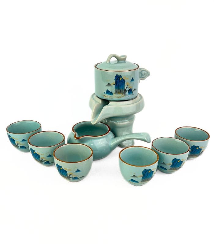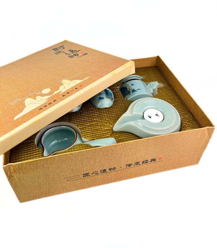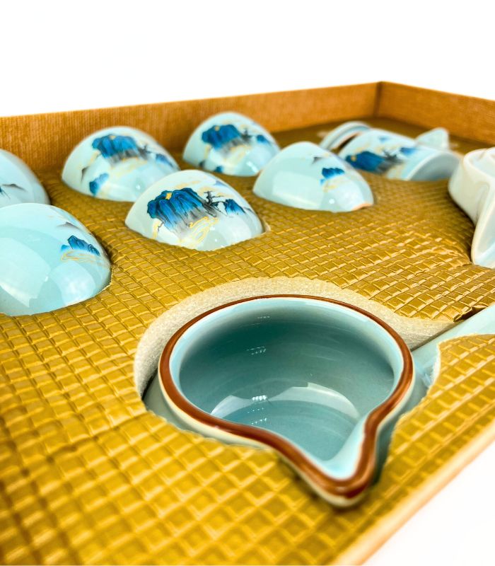 Изящный набор для чайной церемонии на 6 персон выполнен в традиционном восточном стиле. Каждый элемент набора украшен художественной росписью с изображениями горных пейзажей, создающих атмосферу умиротворения. В набор входят 6 чашек, чайник с удобным носиком для аккуратной наливания и высококачественная чахай. Материал набора – высококачественная керамика, прекрасно сохраняющая тепло, подчеркивая вкус и аромат вашего чая. Идеален для китайской чайной церемонии гунфу ча или просто для уютного чаепития с друзьями и близкими.