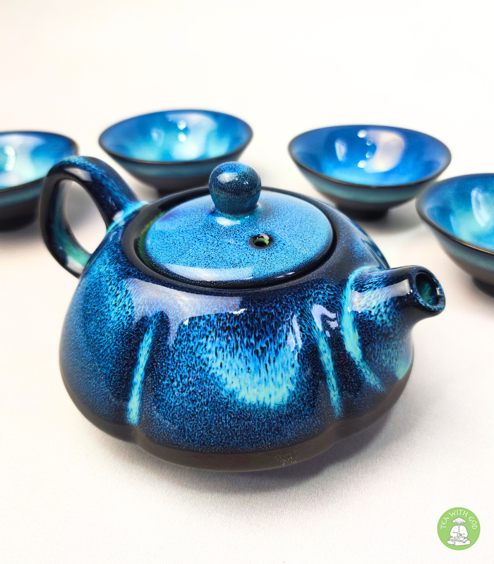 Синий чайник и 4 пиала в оригинальной упаковке:
