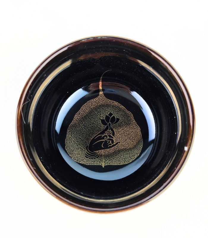 Пиала с иероглифами «Великая мантра» имеет равномерную толстую стенку.