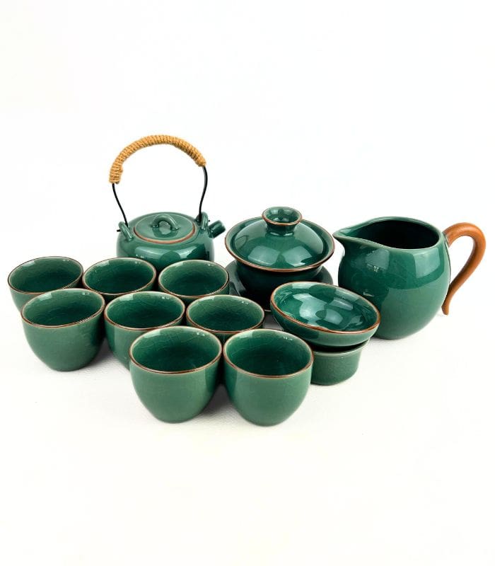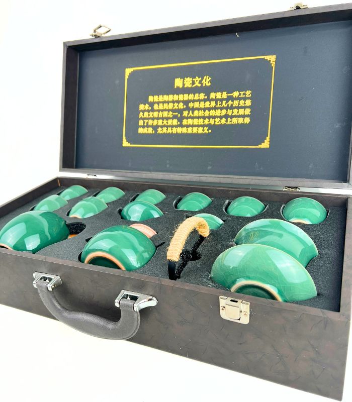 Подарочный чайный комплект посуды – это изысканный набор для настоящих ценителей чая. Выполненный в нежном зеленом цвете, он придает элегантность любому чаепитию. Комплект включает в себя 8 пиал, чайник, чахай, гайвань и ситечко, что позволяет наслаждаться любимыми чаями с комфортом. Каждый элемент набора выполнен из высококачественной зеленой керамики, что подчеркивает гармонию и покой чайной церемонии.
