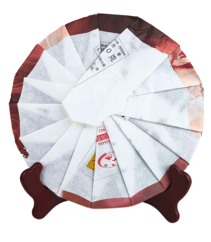 Очень необычный шу пуэр. Вес 100 грамм, при этом его размер такой же как большой блин 357 грамм, только очень тонкий. Очень интересно смотрится. Шу пуэр хорошего качества за небольшие деньги, юбилейная серия.